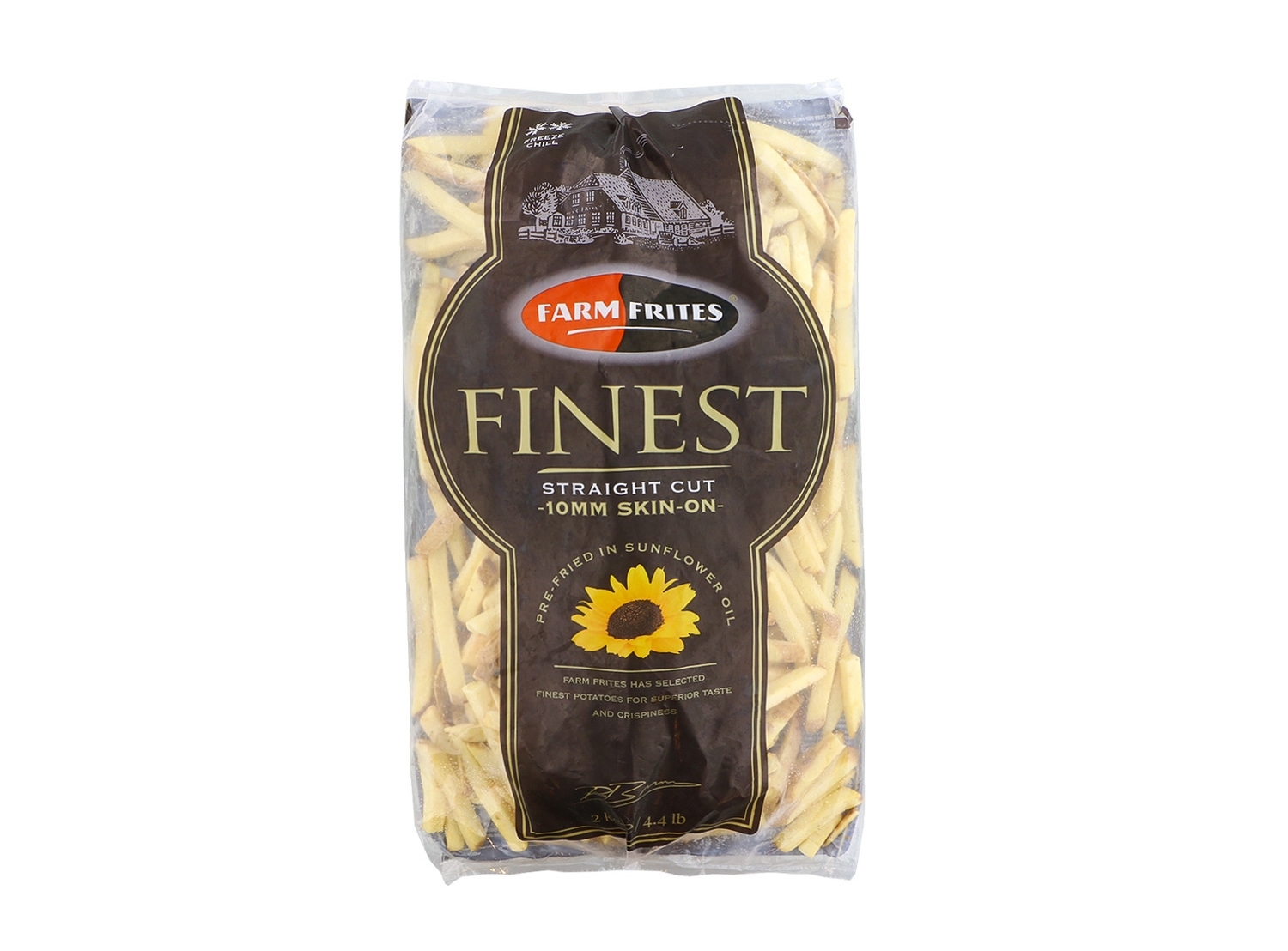 FF Kart. Frī taisnie ar mizu ir kvalitatīvi kartupeļu frī, kas izgatavoti no dabīgiem kartupeļiem, saglabājot to mizu, lai nodrošinātu bagātīgāku garšu un papildus tekstūru. Šis produkts ir sagriezts 10 mm biezos gabaliņos un ir iepakots ērtās 2 kg paciņās, kuras viegli uzglabāt un izmantot nepieciešamajā daudzumā. Iepakojums sastāv no sešām vienībām, nodrošinot kopējo svaru 12 kg, kas ir ideāli piemērots lieliem pasūtījumiem vai ilgstošai lietošanai. Pagatavošana ir ātra un vienkārša – ideāli piemērota gan profesionālai virtuvei, gan mājas lietošanai. Sastāvā ir 95,8% kartupeļu un 4,2% saulespuķu eļļas, nodrošinot izcilu garšu ar enerģētisko vērtību 605 kJ/144 kcal uz 100 g.
